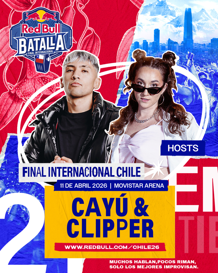 El host chileno, estará acompañado por la uruguaya Clipper, quién, al igual que Cayú, es parte de la nueva generación de “maestros de ceremonia” del freestyle que han irrumpido en la escena con su actitud y energía.